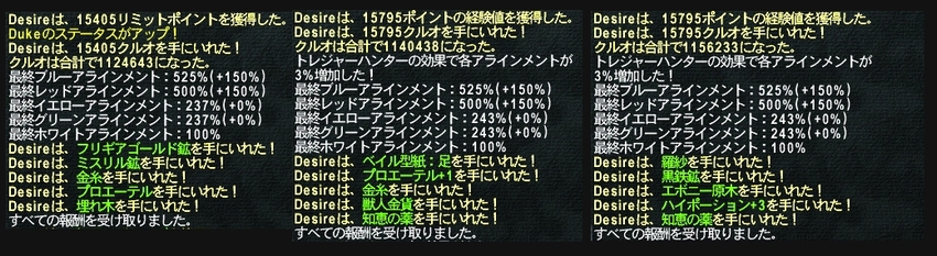 ・モンスター討伐時のトレジャーハンターの効果度合いに応じて、各アラインメントにボーナスが加算されるようになりました。
