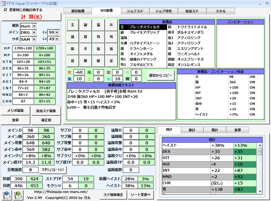 指が+6なのは+7指輪はSTRが下がってしまう為。