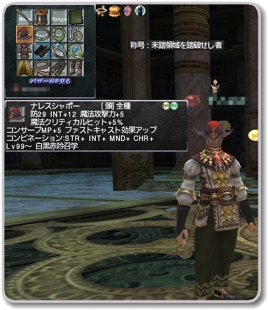 INT+12 魔法攻撃力+5 魔法クリティカルヒット+5% コンサーブMP+5 ファストキャスト効果アップ