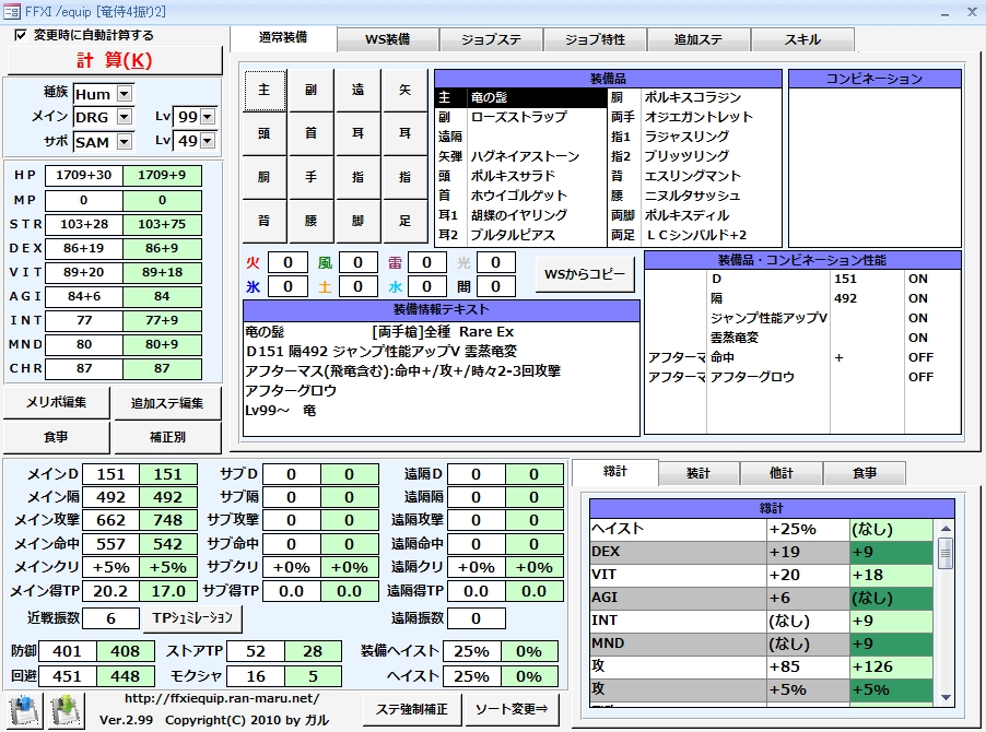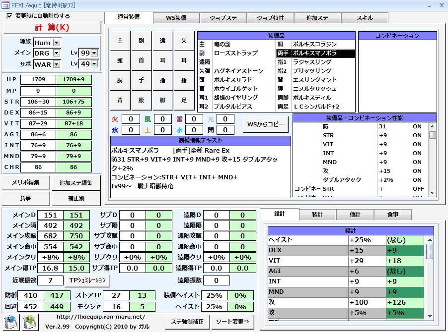 手をオジエ手→ポルキス手にしてコンビネーション発動STR、VIT、INT、MND各+10おいしいです。