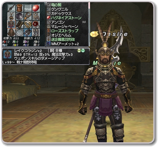 命中+12 ダブルアタック+3% 被物理ダメージ-5% 被物理ダメージ時に相手に貯まるTP-10%