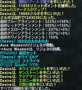 備前長船兼光:両手刀◆D110 隔420 STR+10 DEX+10 VIT+10 AGI+10 INT+10 MND+10 CHR+10 侍 Lv95 RaEx
