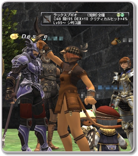 ラックスプギオ:短剣◆D48 隔195 DEX+10 クリティカルヒット+4% シ吟コ踊 Lv95 RaEx