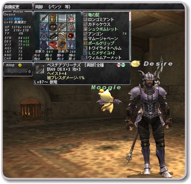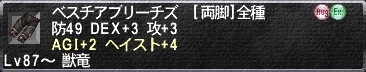 ベスチアブリーチズ:両脚◆防49 DEX+3 攻+3 ヘイスト+4% 被ブレスダメージ-1% 獣竜 Lv87 Ex