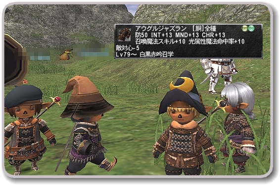 INT+13 MND+13 CHR+13 召喚魔法スキル+10 光属性魔法命中率+10 敵対心-5 白黒赤吟召学 Lv79 RaEx