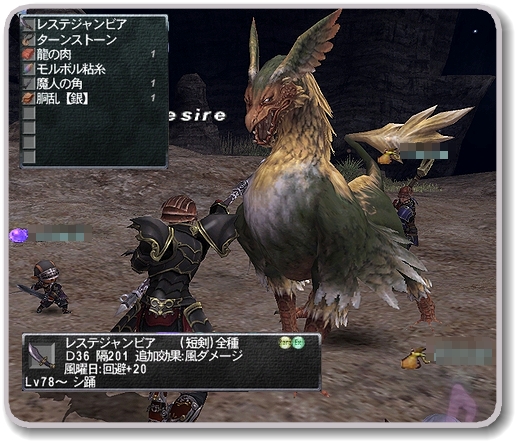 STR+4 DEX+2 攻+10 ヘイスト+2% コンビネーション:ヘイスト+5% 戦ナ暗獣侍竜 Lv78 Ra