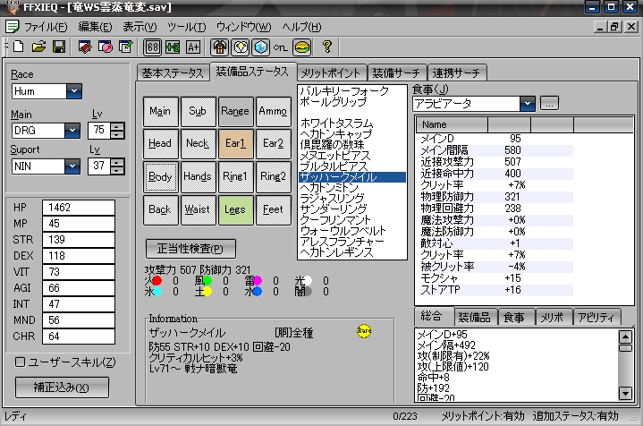 アラビアータ◆HP+17%(上限140[目安823]) STR+5 VIT+2 INT-7 攻+22%(上限90[目安409]) 飛攻+22%(上限90) ストアTP+5 睡眠耐性+8 30分