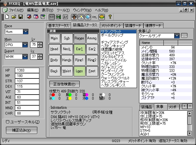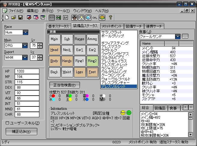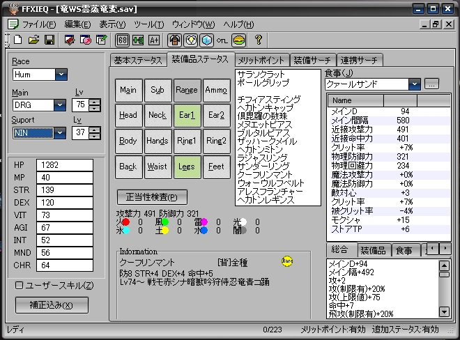 ですが、竜騎士のDEXは高いほうではなくSTRを維持しつつDEX120にもっていくのは至難の技。