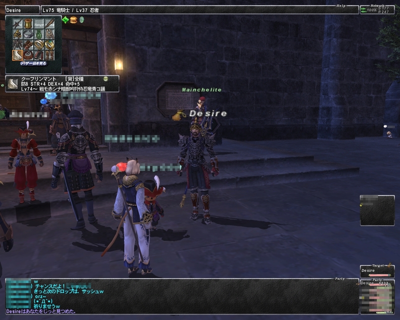 夜と違ってNM放置されまくりで、マザーはNAに取られたものの、クルタナ、ファウスト、スチクリあたりをやることでできました。