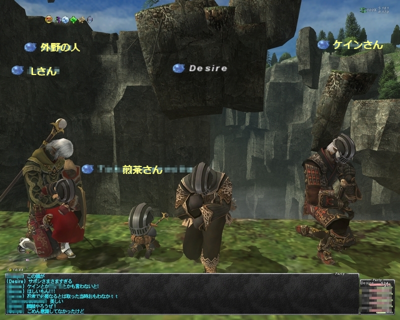 メンバーは言わずと知れた変態外野の人、実はかなりの廃人Lさん、全身緑色が眩しいぜ煎茶さん、名前全然違うのにイケメン=ケインだろ!ってことで呼ばれるようになったケインさん、そして1日中沸き待ちしてて後に引けない髭の5人。